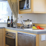 The Lagoon 450 Flybridge is a very spacious catamaran where you will have a lot of space to relax, take the sun during sailing time, enjoy a nice meal or stare at the sky.